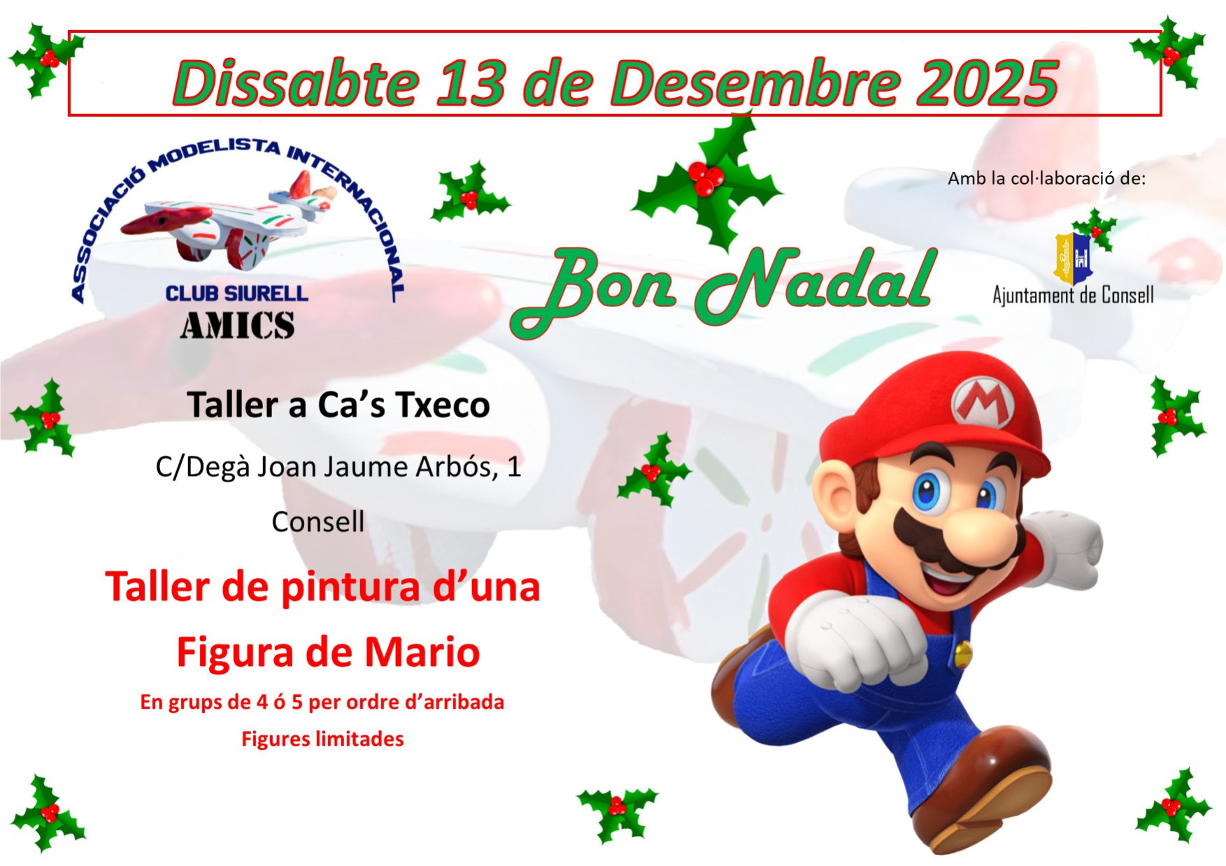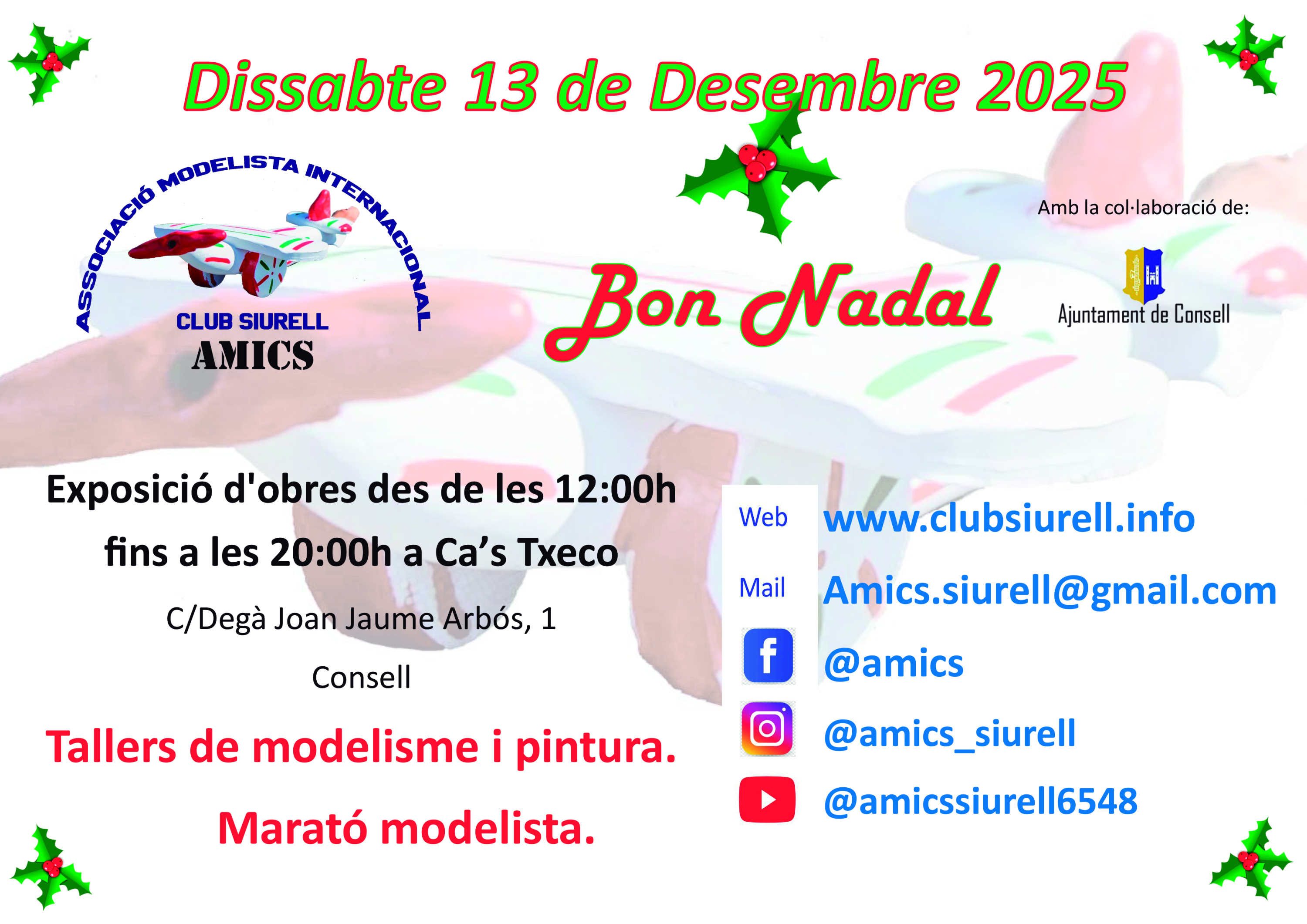 Un altre any més serem a La Fira de Nadal de Consell. Exposarem les nostres últimes maquetes fetes aquest any i també realitzarem un taller de pintura per als més petits. Animeu-vos a venir.